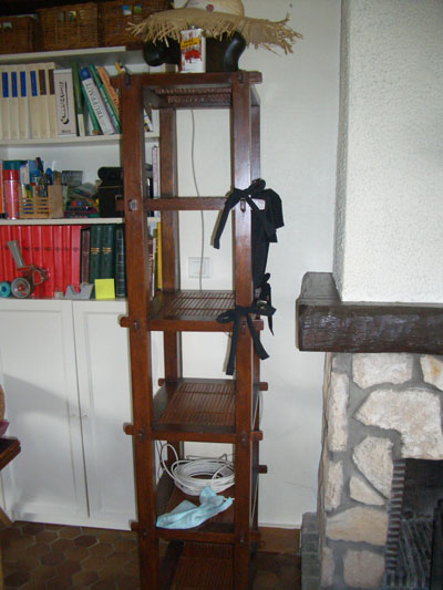 3. @schéhérazade : pour le choix de la couleur, en fait je n'ai pas tellement eu le choix, Chéri voulait bien que je « déguise » l'étagère en cachette à bazar à condition que ça ne se voit pas et que ça soit uni, donc noir ou blanc et comme blanc c'est salissant de surcroit à côté d'un poële à bois…